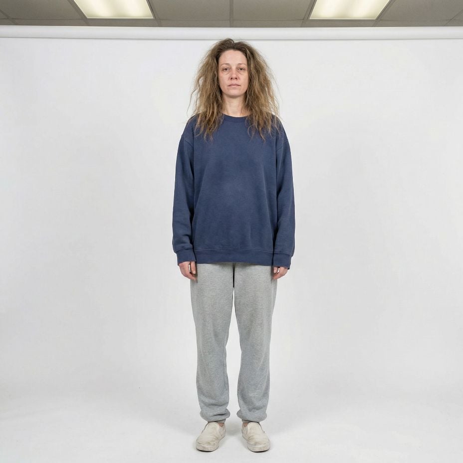 We took one simple self-portrait of a woman in her early 40s. Oversized sweatshirt, gray joggers, messy hair—the most relaxed, no-effort version of herself. Then we fed it to AI with one specific mission: transform her into the epitome of “quiet luxury” old money elegance.