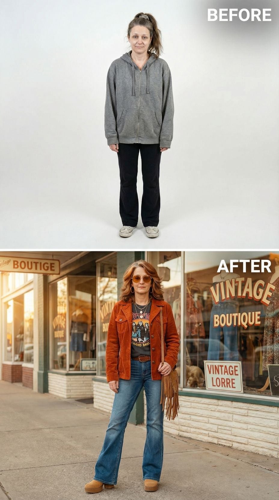 Tired Suburban 44 year old woman to Bohemian Rock Chic in Minutes