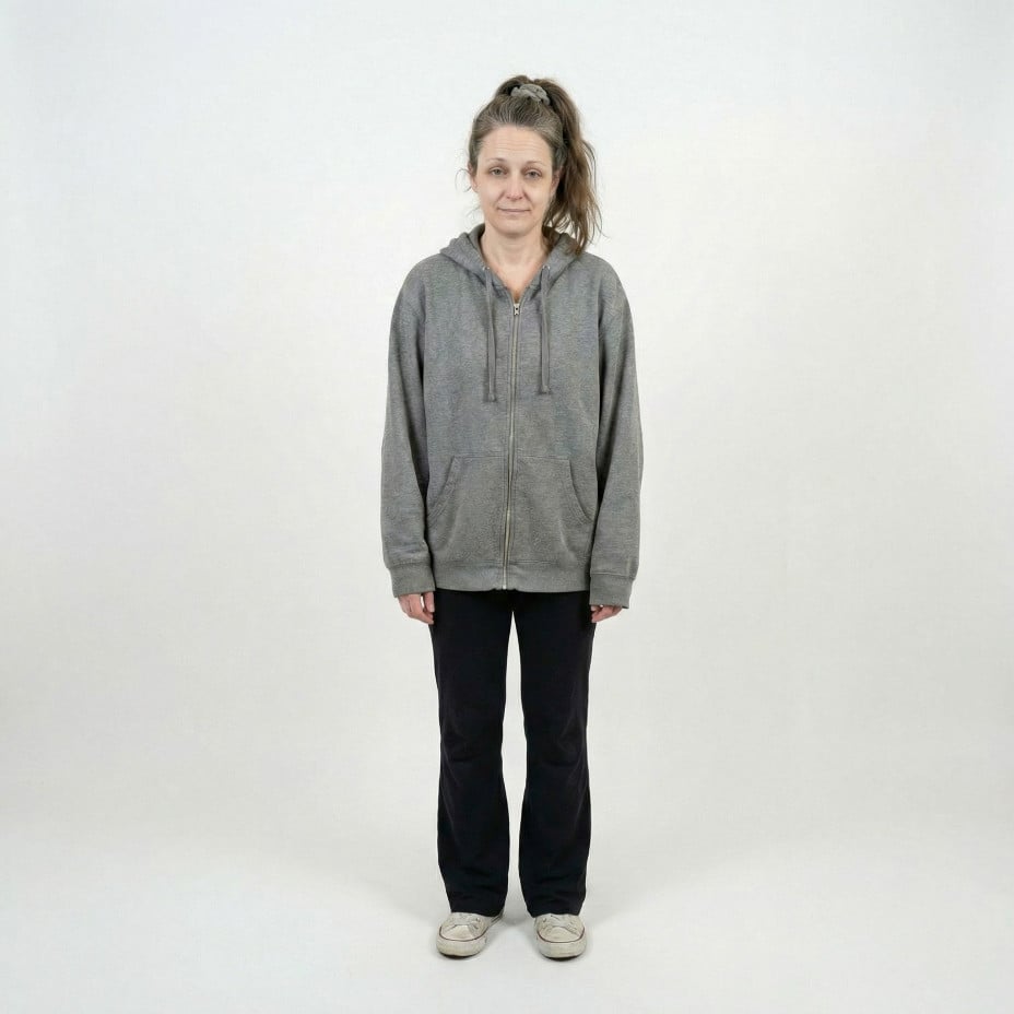 Black hoodie paired with lace midi skirt creates an unexpected contrast that screams underground cool. Combat boots ground the look while layered necklaces add feminine edge. This tired suburban 44 year old woman transforms into a street-smart goddess who owns every concrete bowl and graffiti wall. The backpack completes her urban warrior aesthetic perfectly.