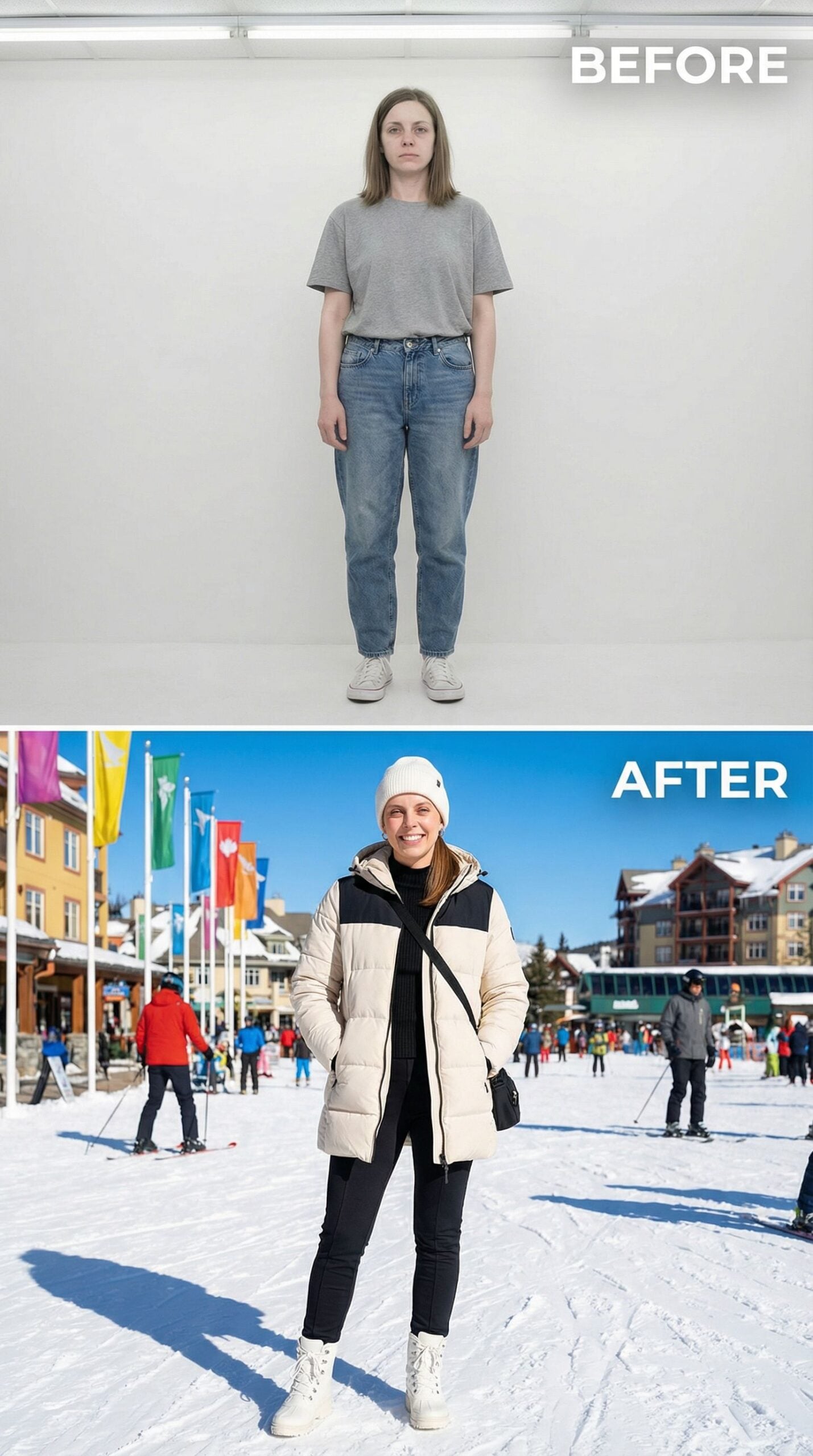 At 33, I decided it was time for a fresh winter makeover rooted in the Alpine Après-Ski aesthetic — cozy luxury with a refined edge. I pictured cashmere turtlenecks, fur vests, sleek ski pants, and shearling boots paired with soft, polished hair and oversized sunglasses. To bring the vision to life, I asked AI to create a full set of outfits and beauty transformations. These 30 before-and-after looks capture the chalet-ready style shift perfectly.