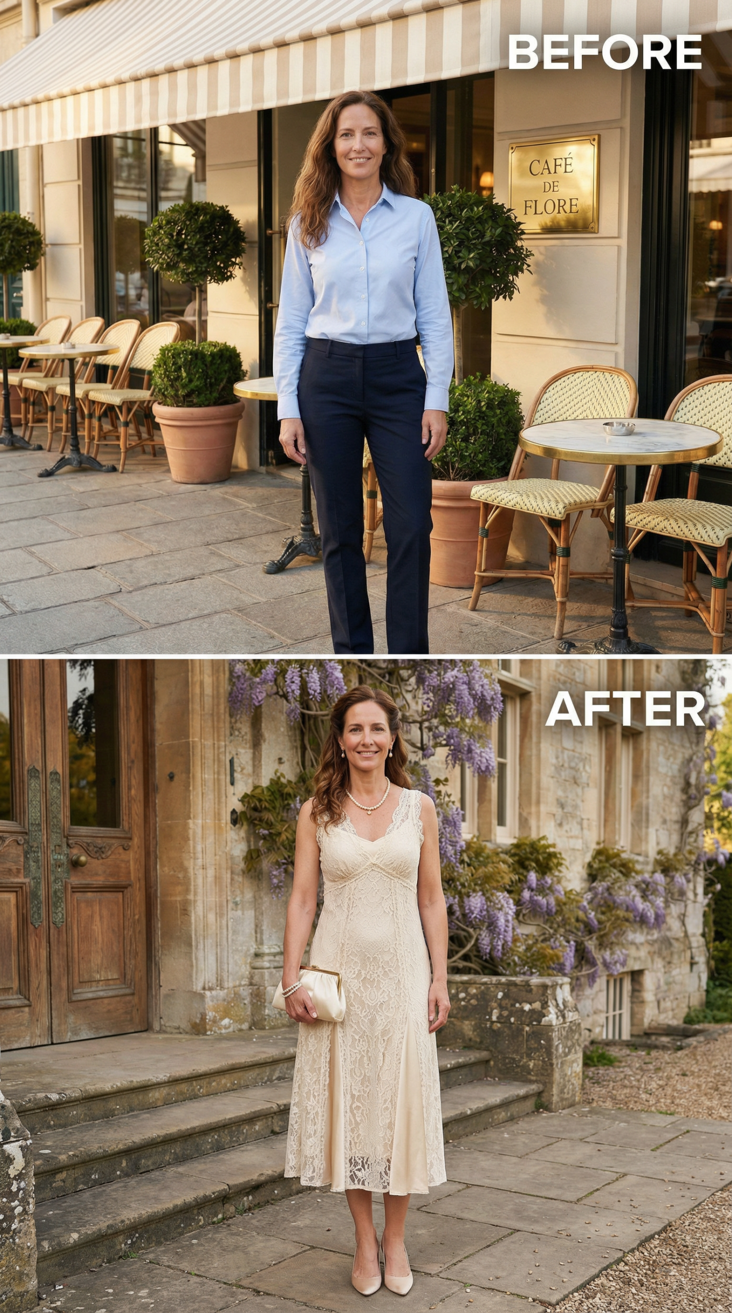 From Café Casual to Country-House Lace: One Woman’s Complete Wardrobe Shift