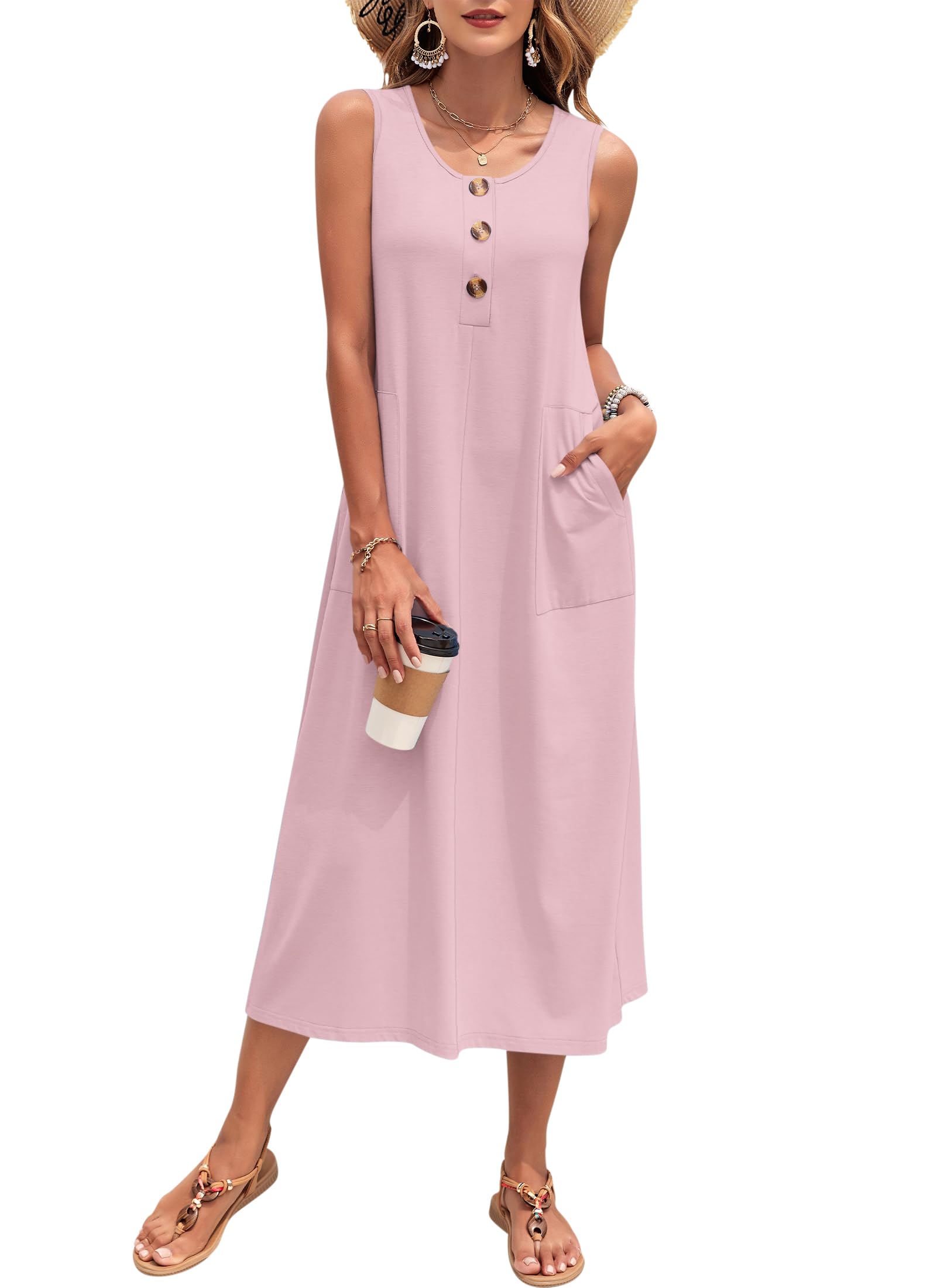 The OFEEFAN summer dress has a round neck and sleeveless cut, so you stay cool but still look put-together.