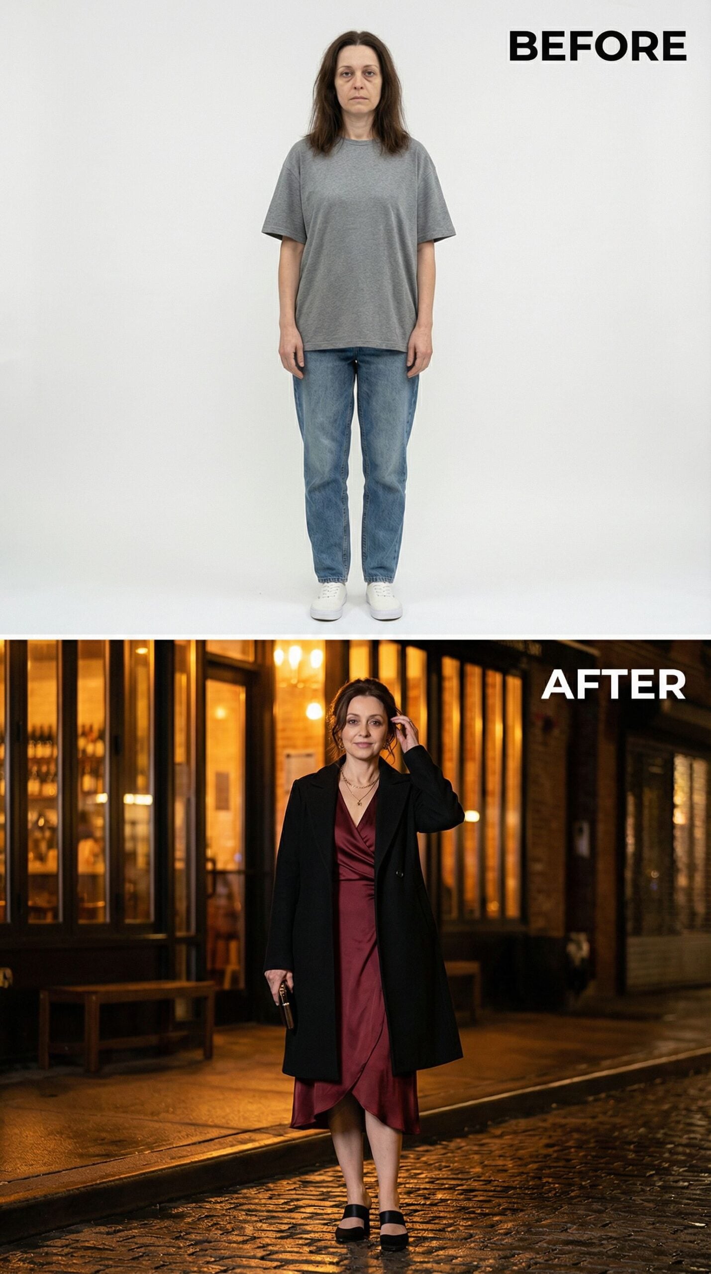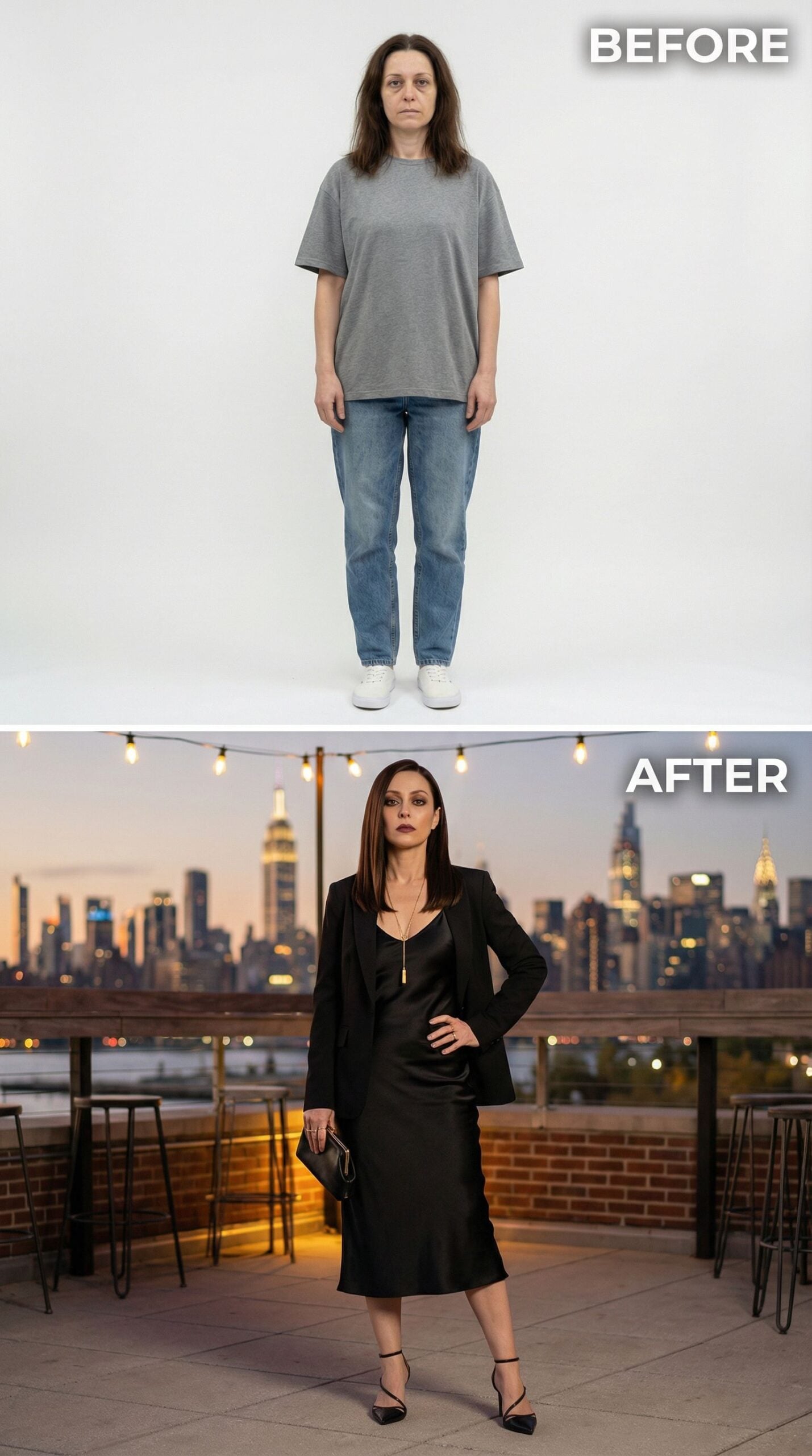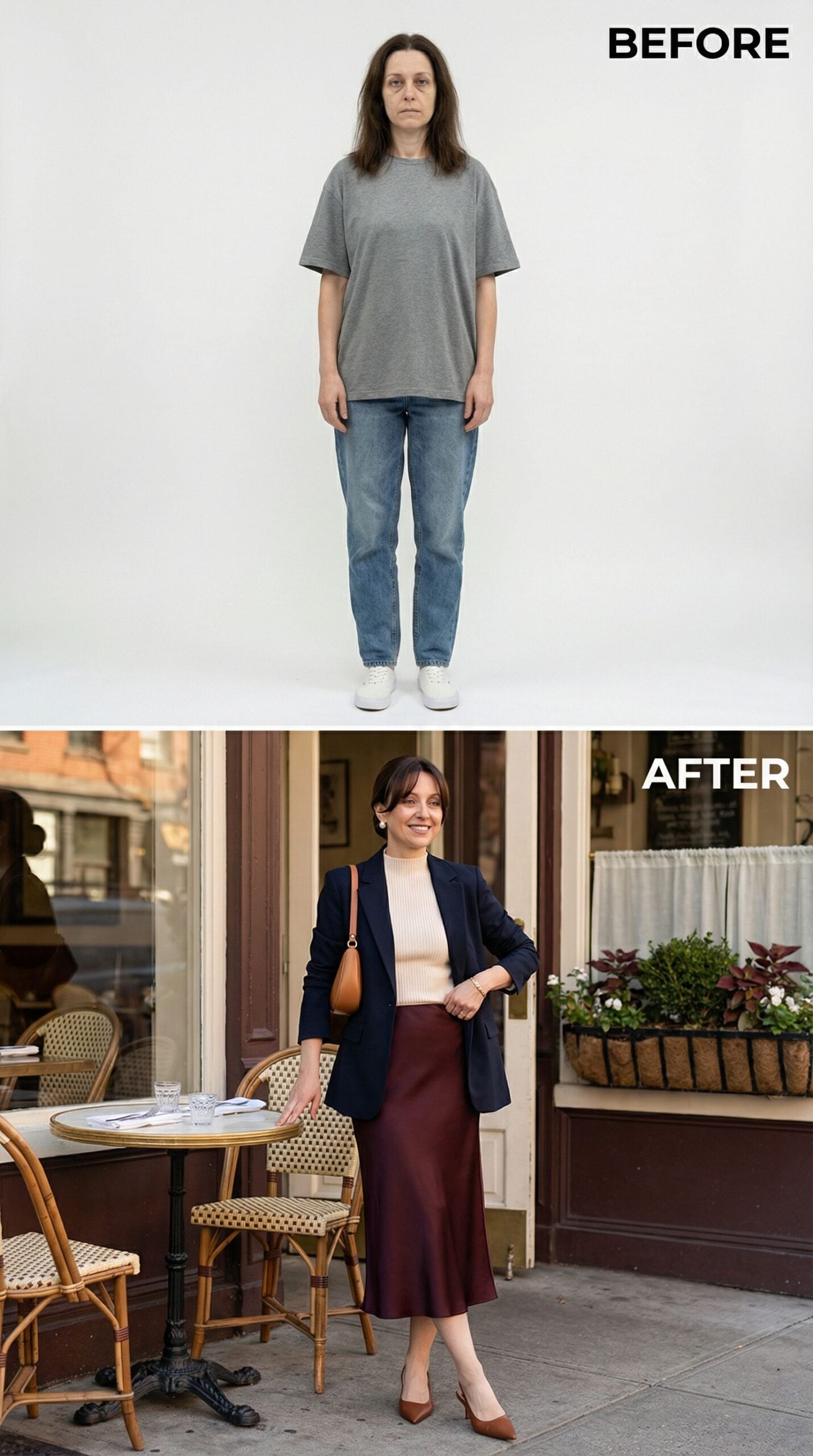At 43, I’m rooted in the rich soul of this Brownstone era neighborhood — and I’m ready for something new. I handed my style profile over to AI and let it dream boldly on my behalf. What came back were looks that honor my age, my energy, and my borough — modern without losing warmth, polished without losing edge. This is what happens when artificial intelligence meets real-woman style.