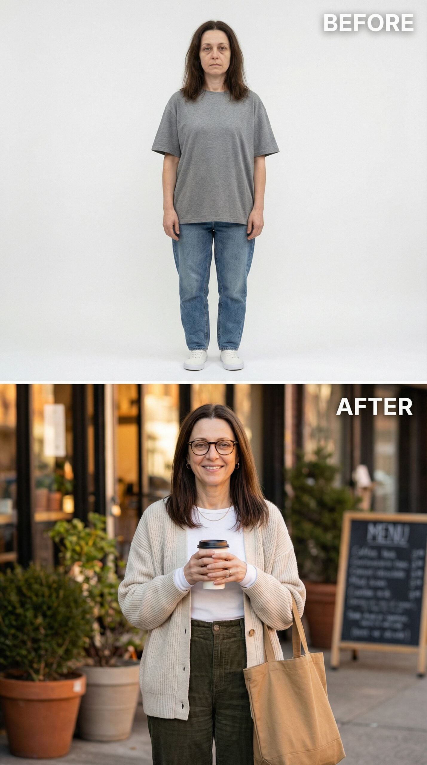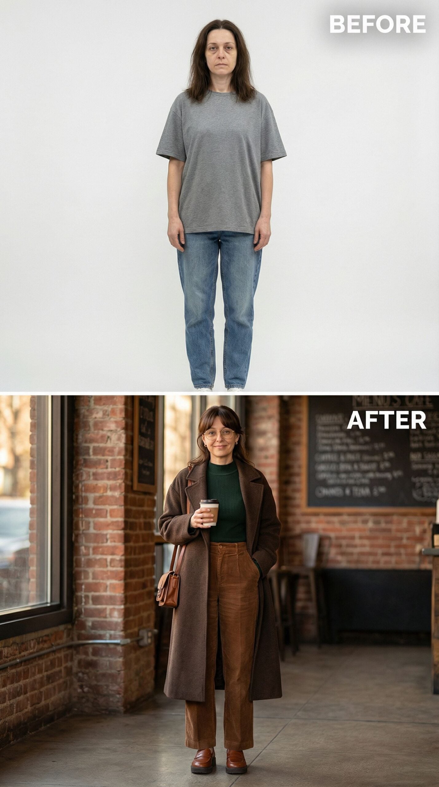 Frumpy Woman to Cozy Coffee Shop Chic