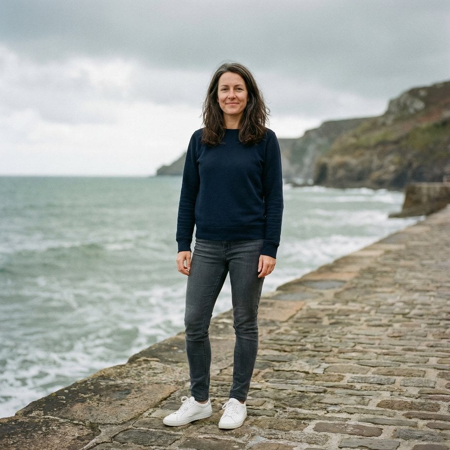 Editor’s Note: The duster cardigan offers a longer silhouette that moves with purpose through narrow village streets. Its open front creates vertical lines that feel both practical and polished. This is the kind of layer that works equally well for a harbor walk or a gallery visit.