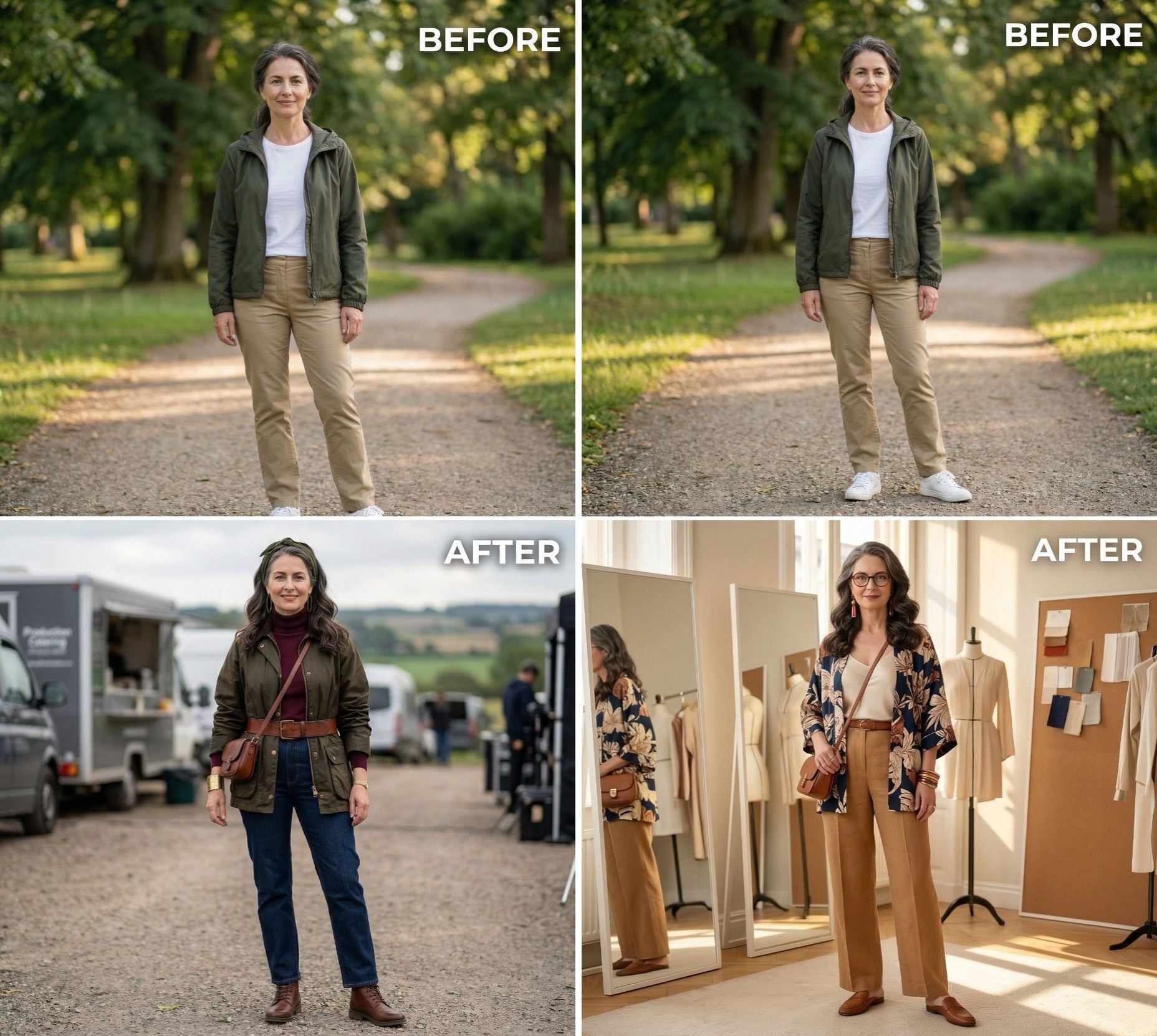 Most women scroll past AI fashion experiments, but one 55-year-old asked for something different: the polished, lived-in style of costume departments on film sets. The results delivered 26 looks that capture that backstage magic without feeling like a costume.