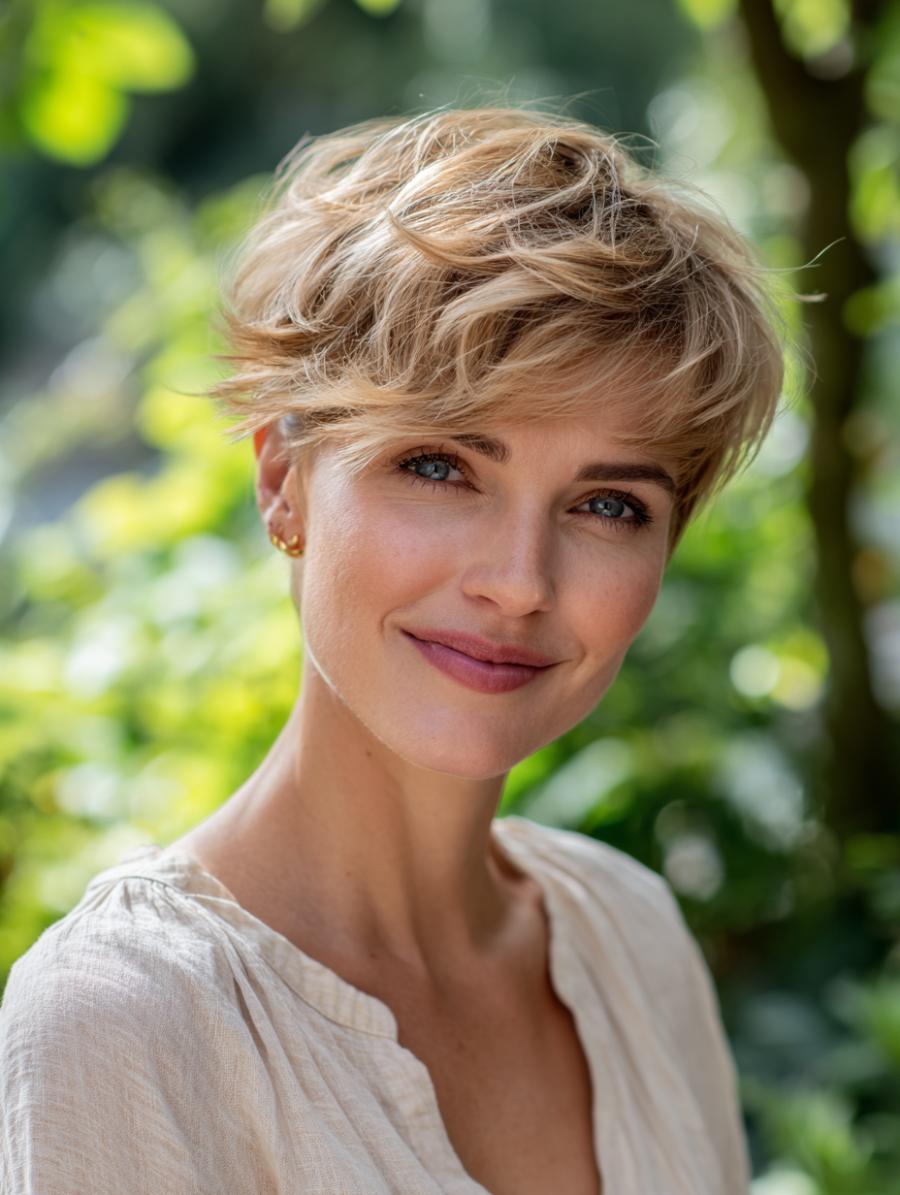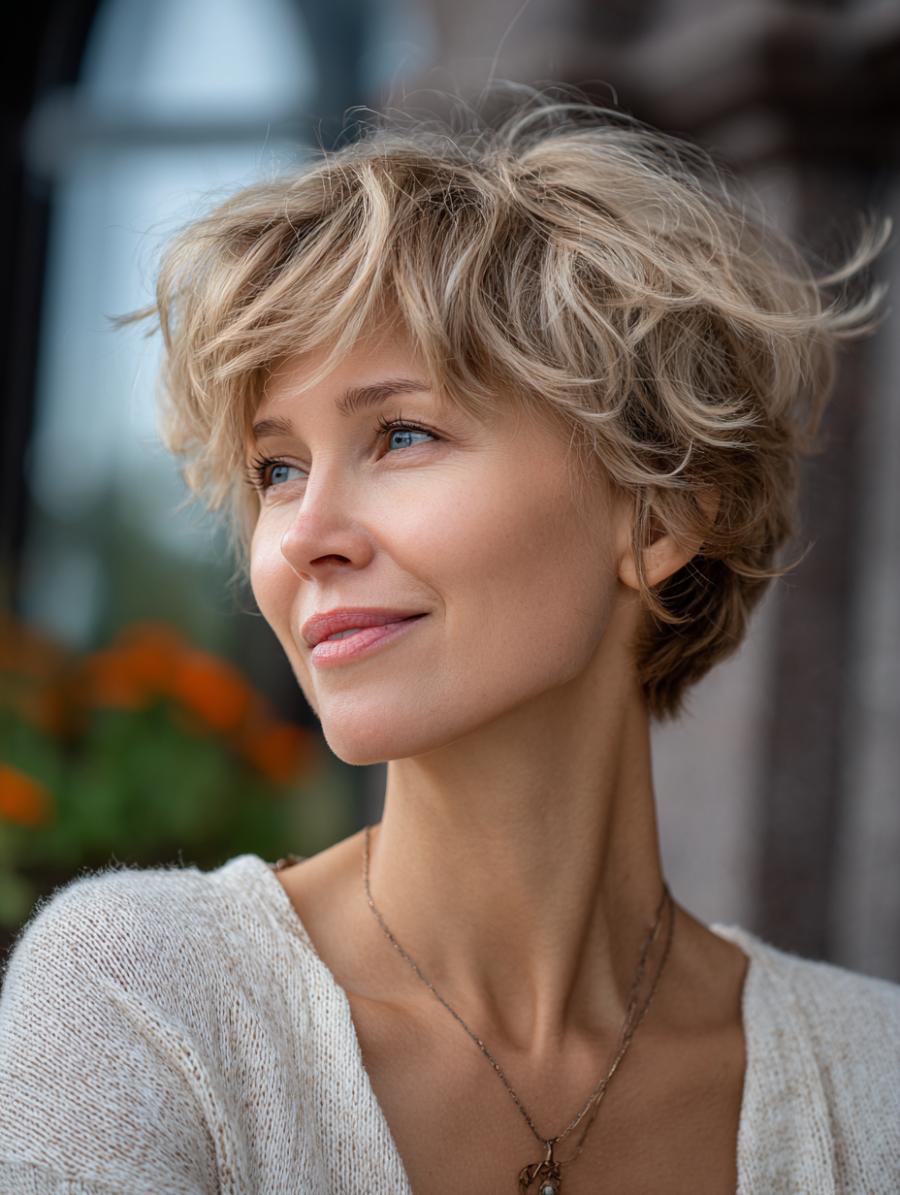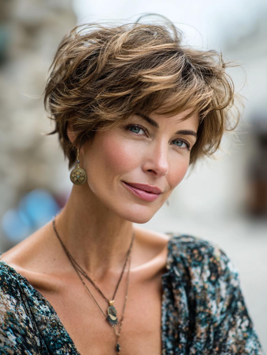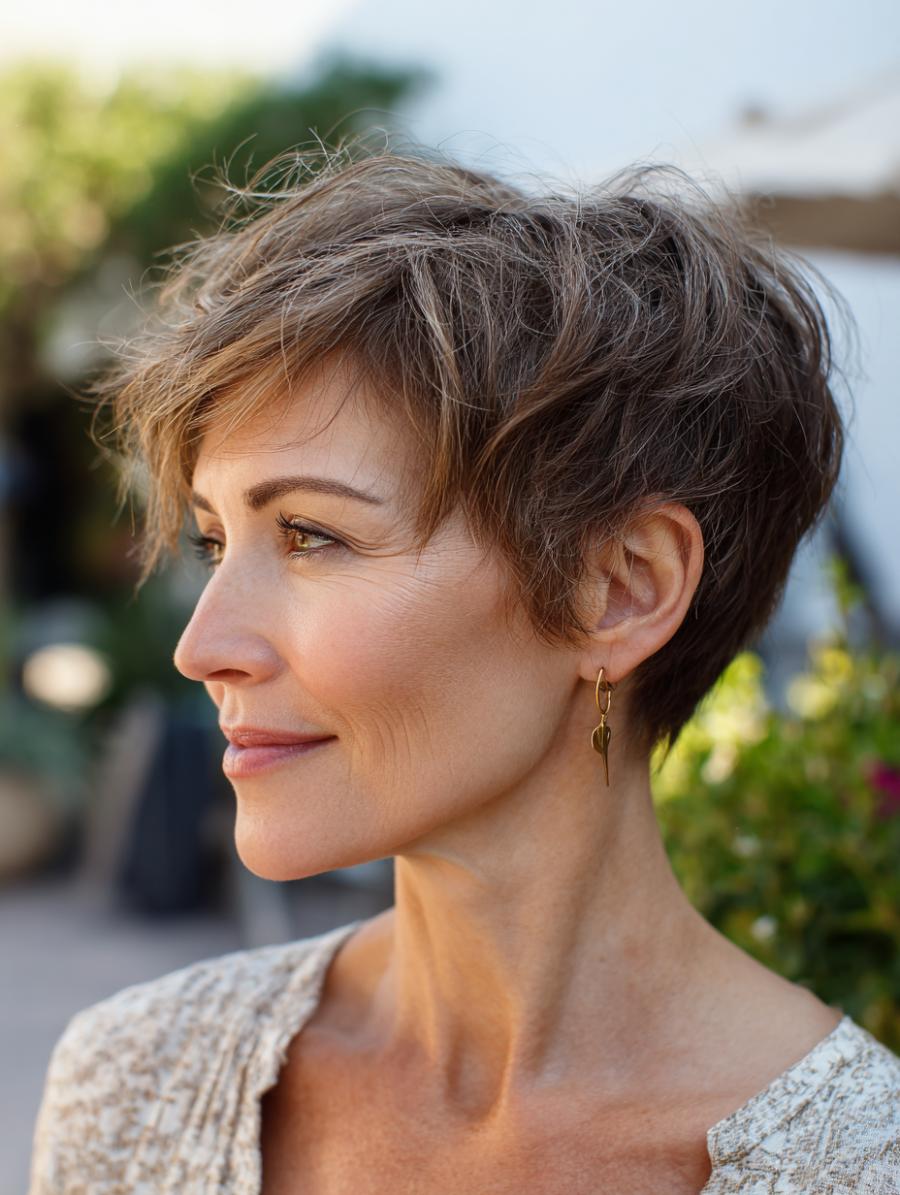 Tousled Pixie Cut Brings Effortless Elegance to Everyday Styling