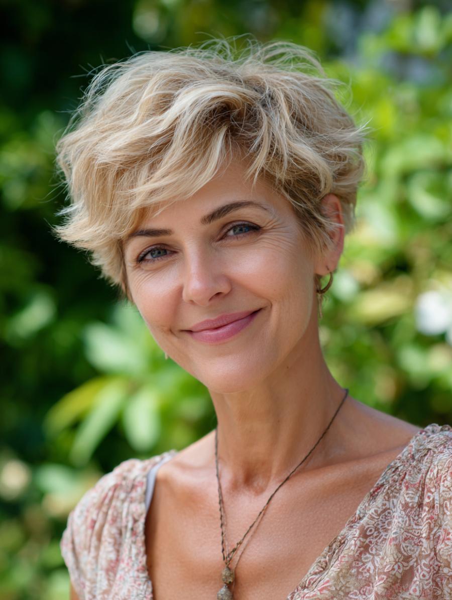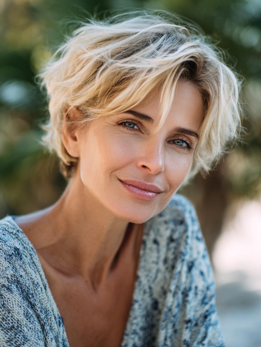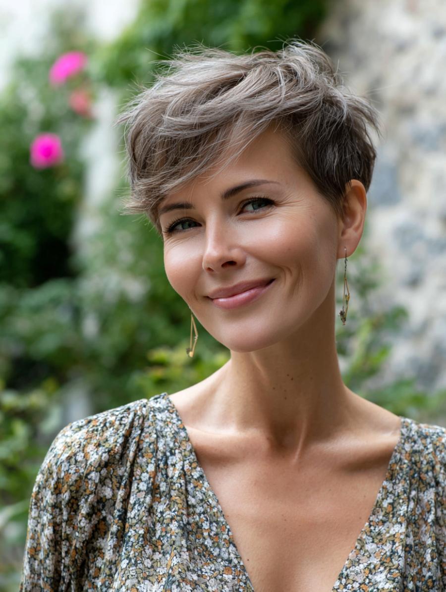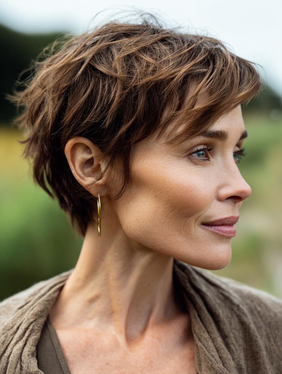 Tousled Pixie Cut Brings Effortless Elegance to Everyday Styling