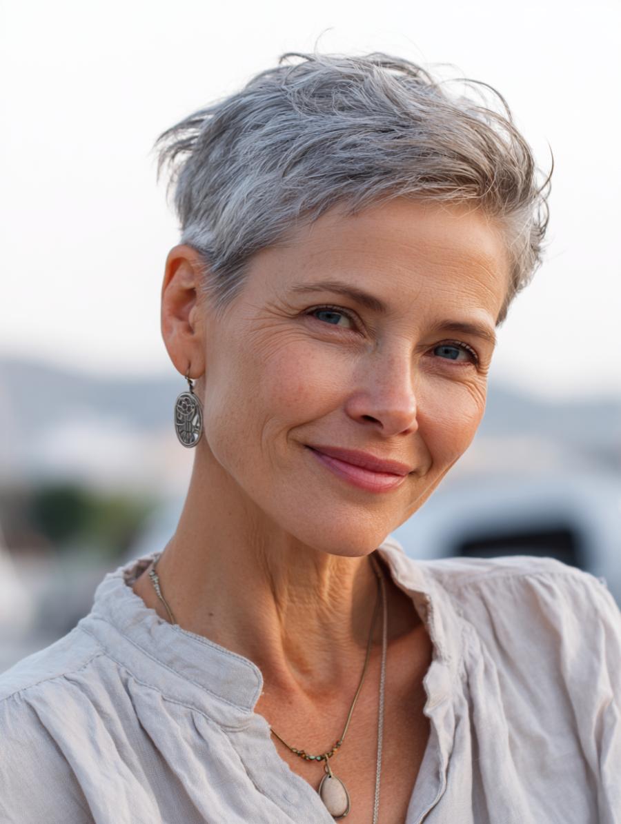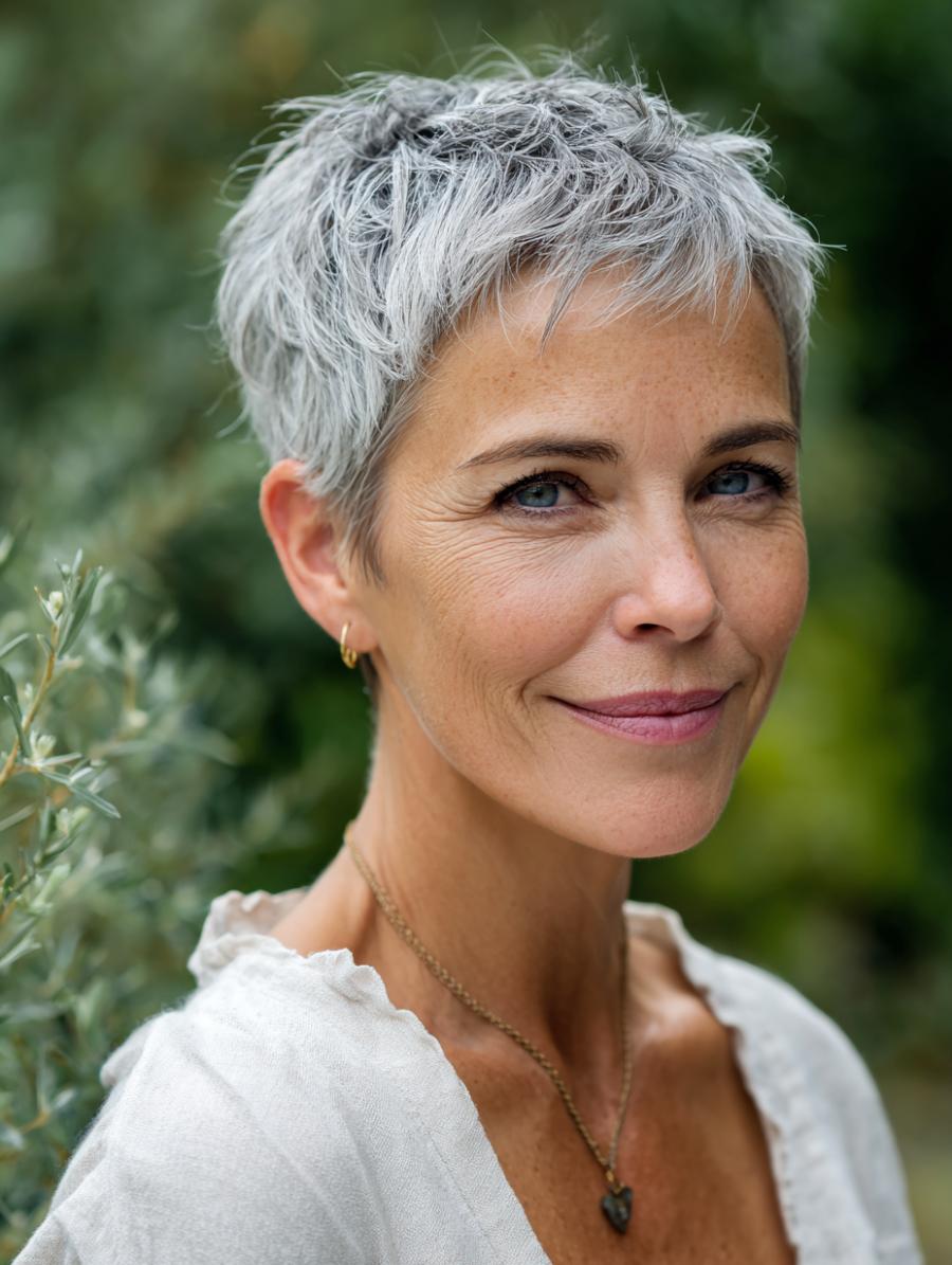 Tousled Pixie Cut Brings Effortless Elegance to Gray Hair
