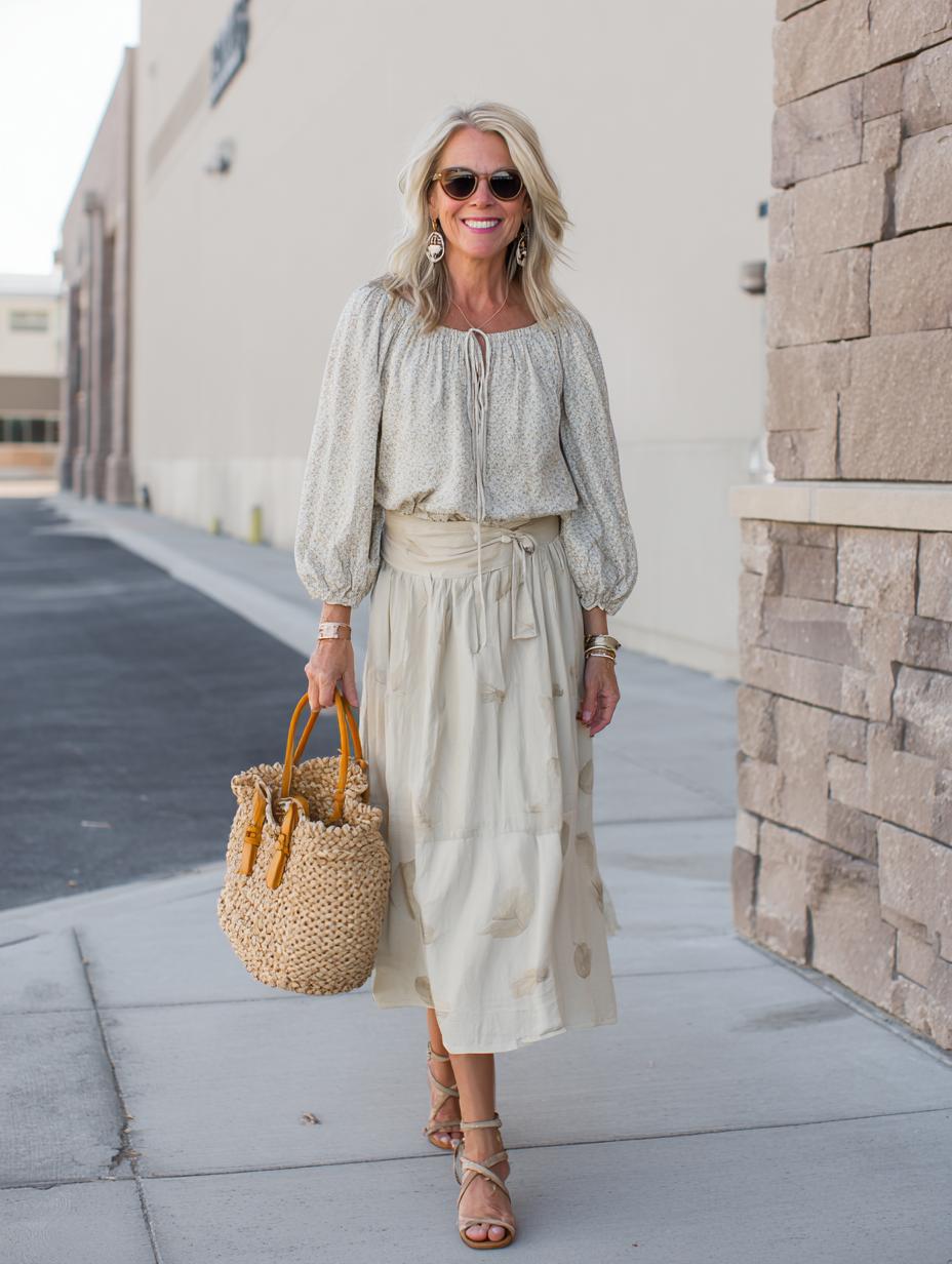 Effortless Elegance: Peasant Blouse and Midi Skirt Combo
