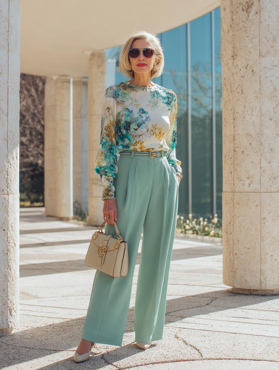 Chic Floral Blouse and Wide-Leg Trousers – Effortless Elegance That Flatters
