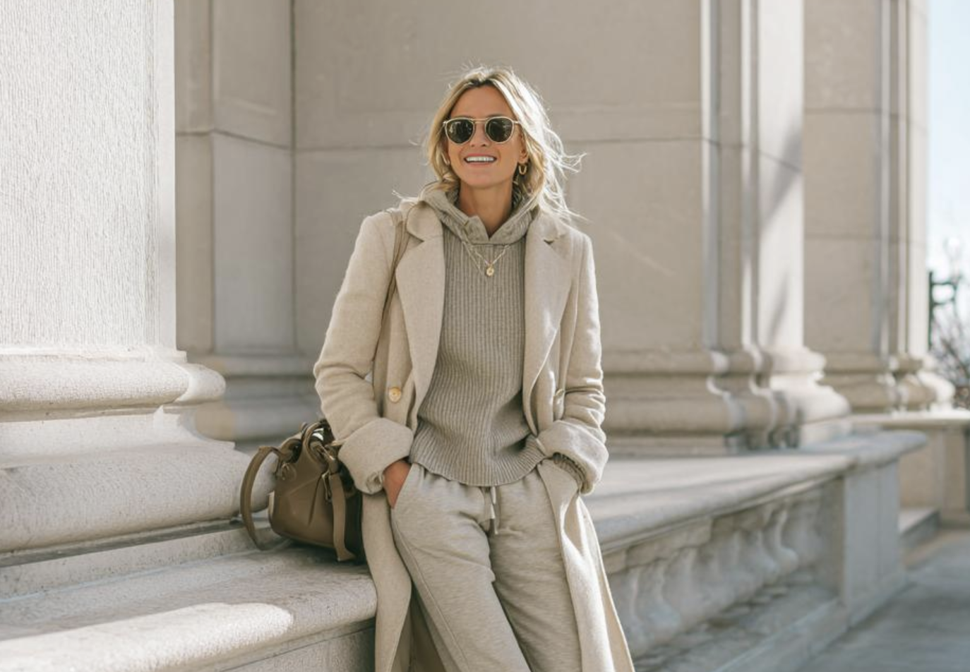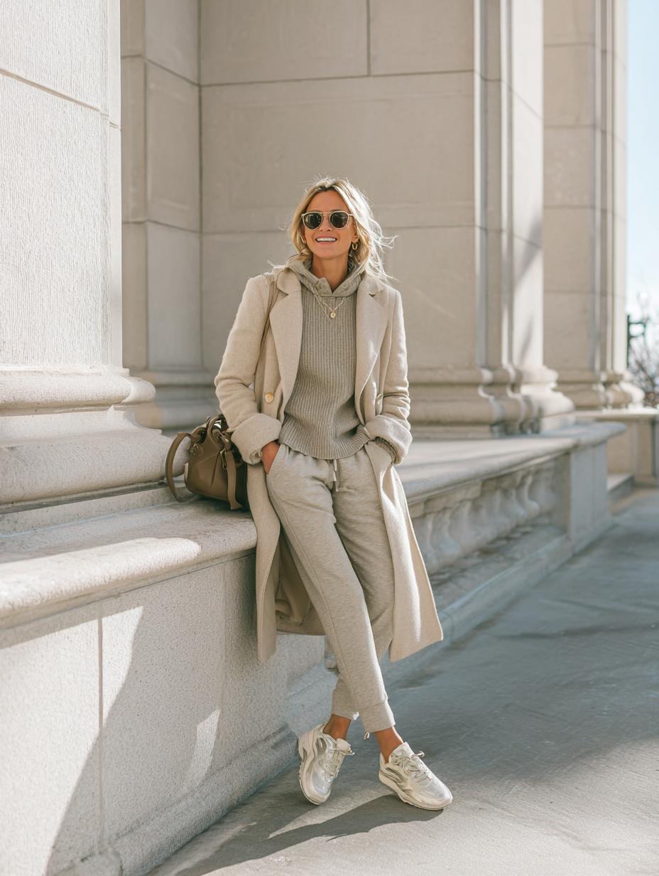 Elevated Neutrals Meet Athletic Comfort in Cashmere and Sneakers