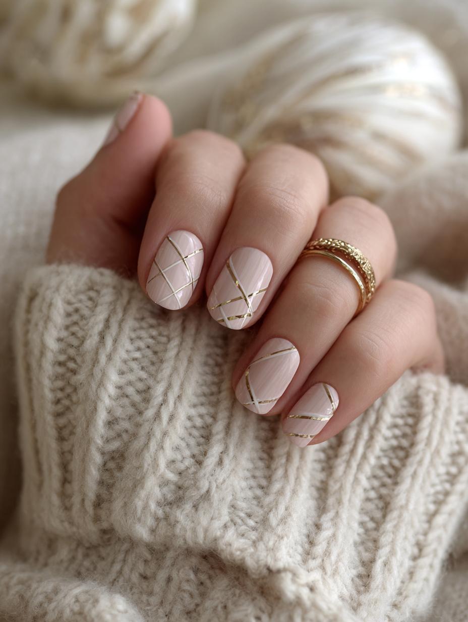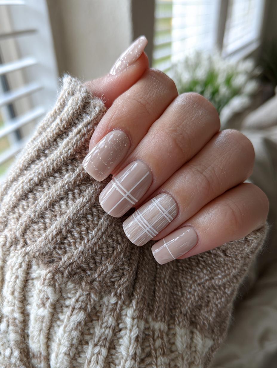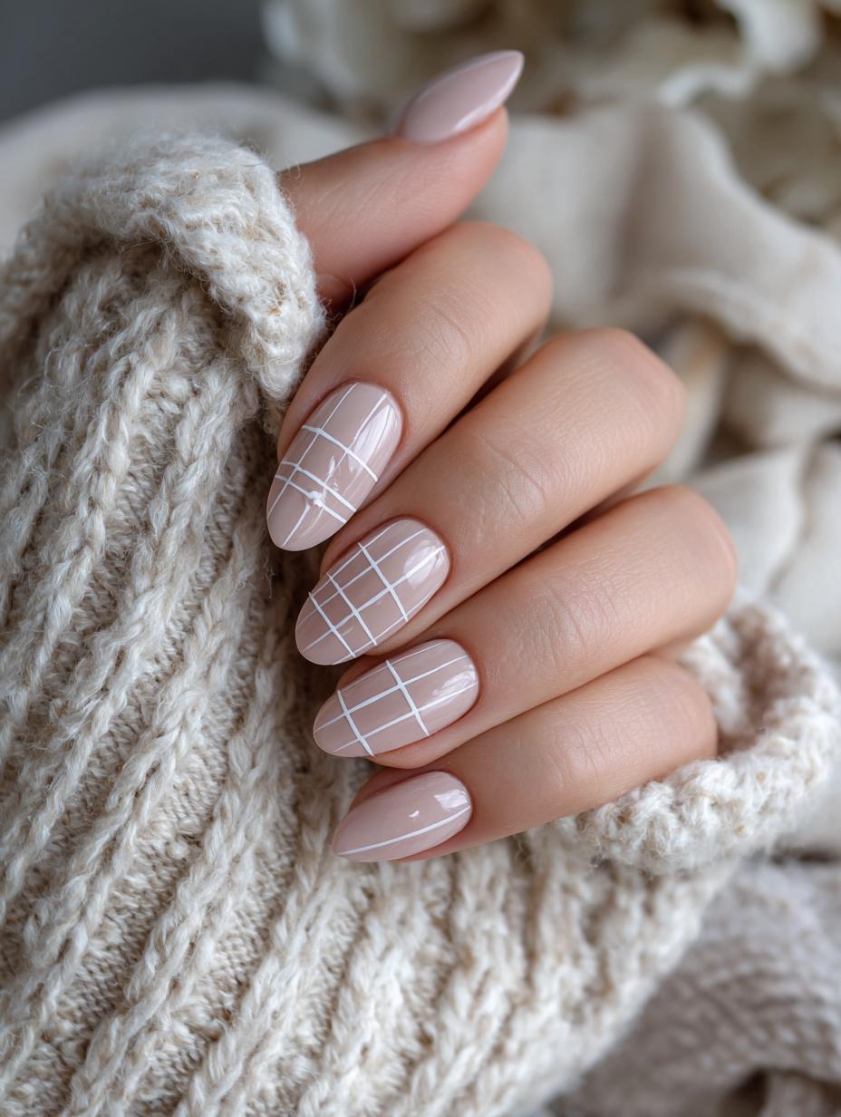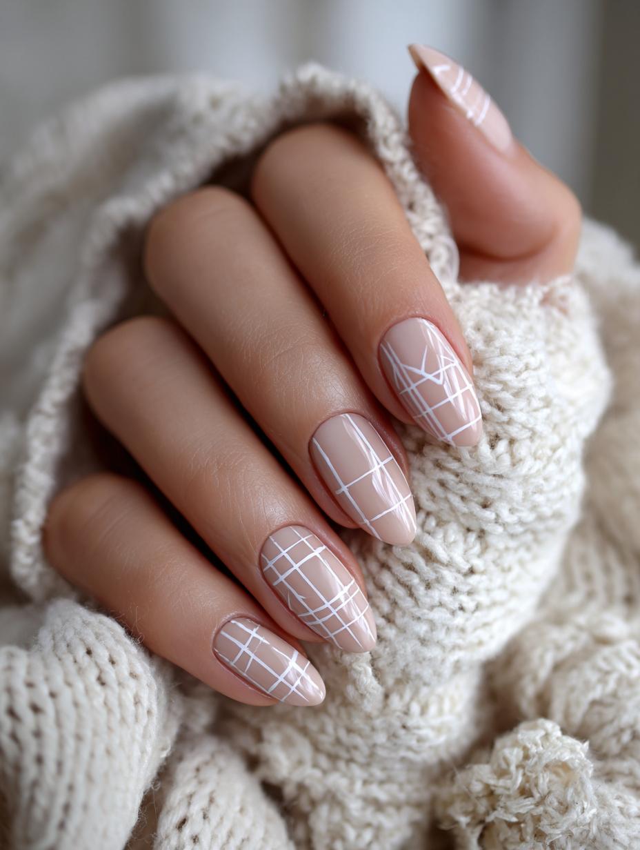 Minimalist Grid Nail Art in Nude Tones