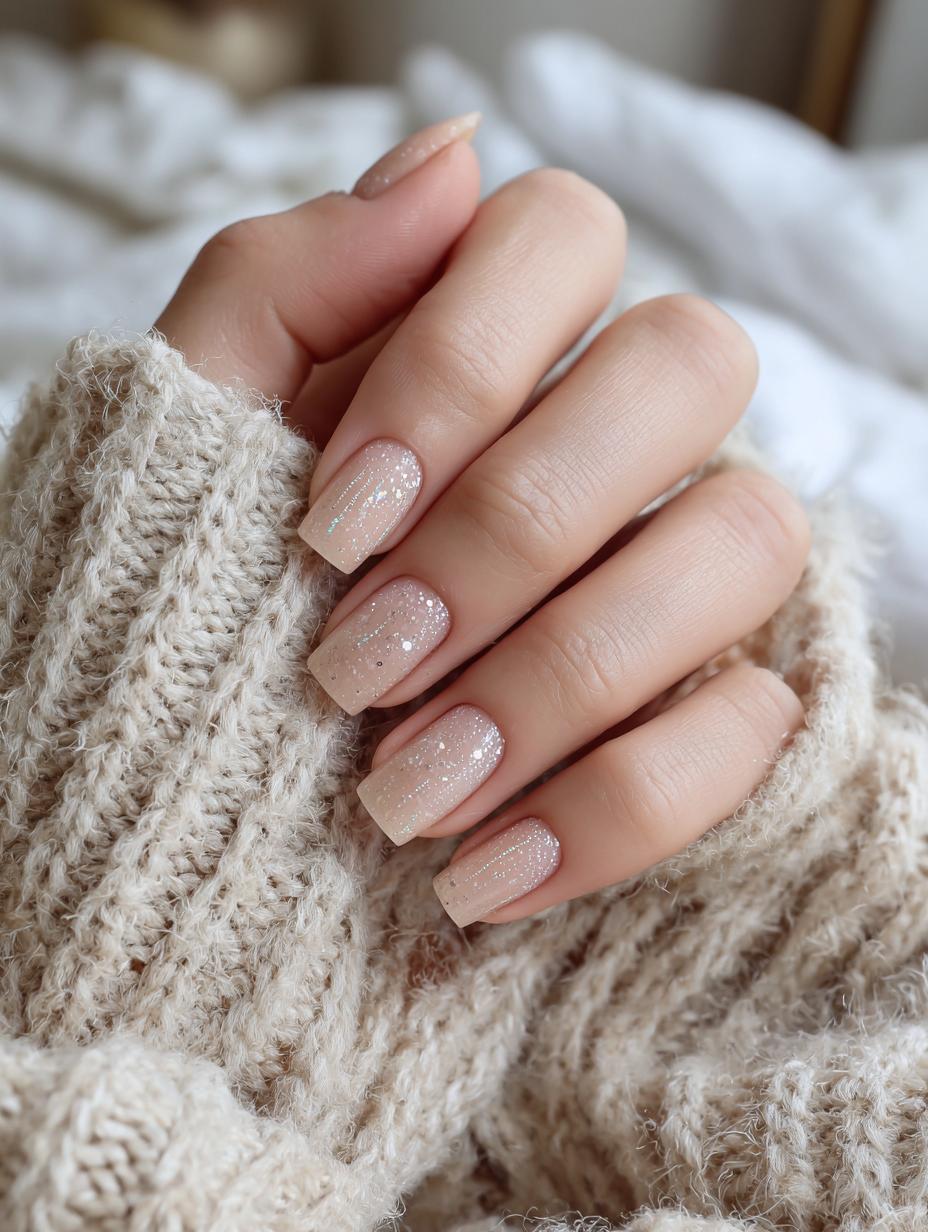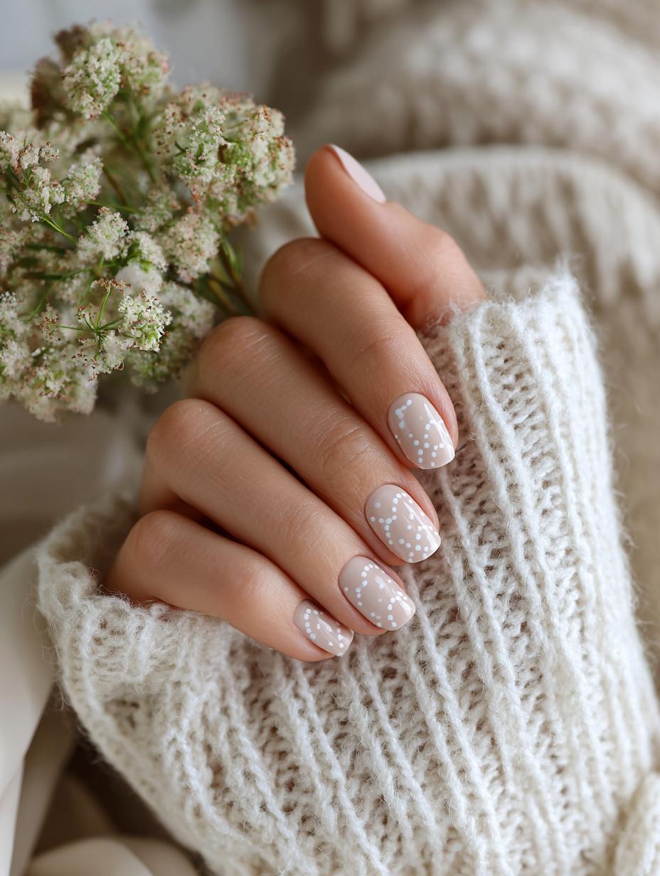 Ethereal Nude Nails with Delicate White Accents