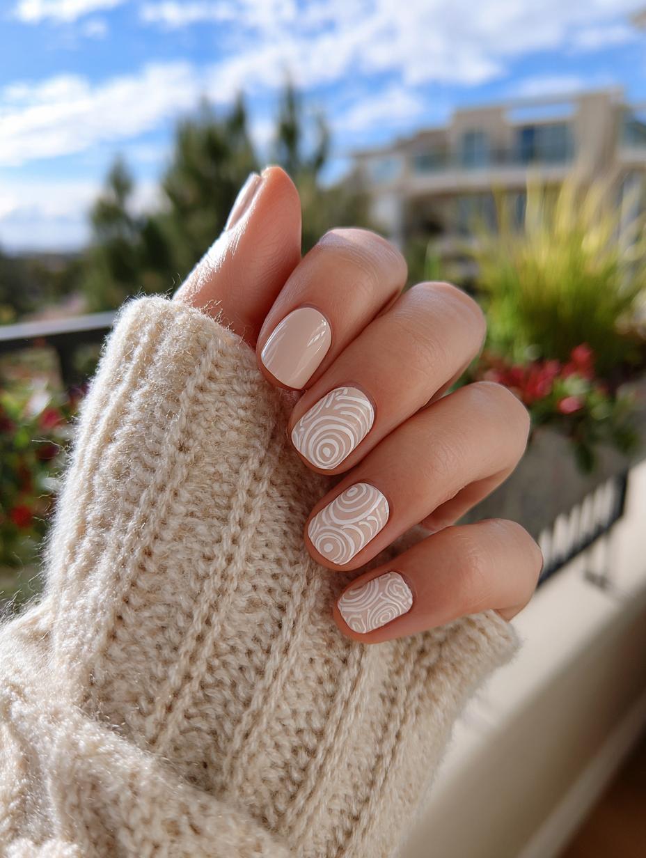 Swirl Pattern Nude Nails for Effortless Elegance