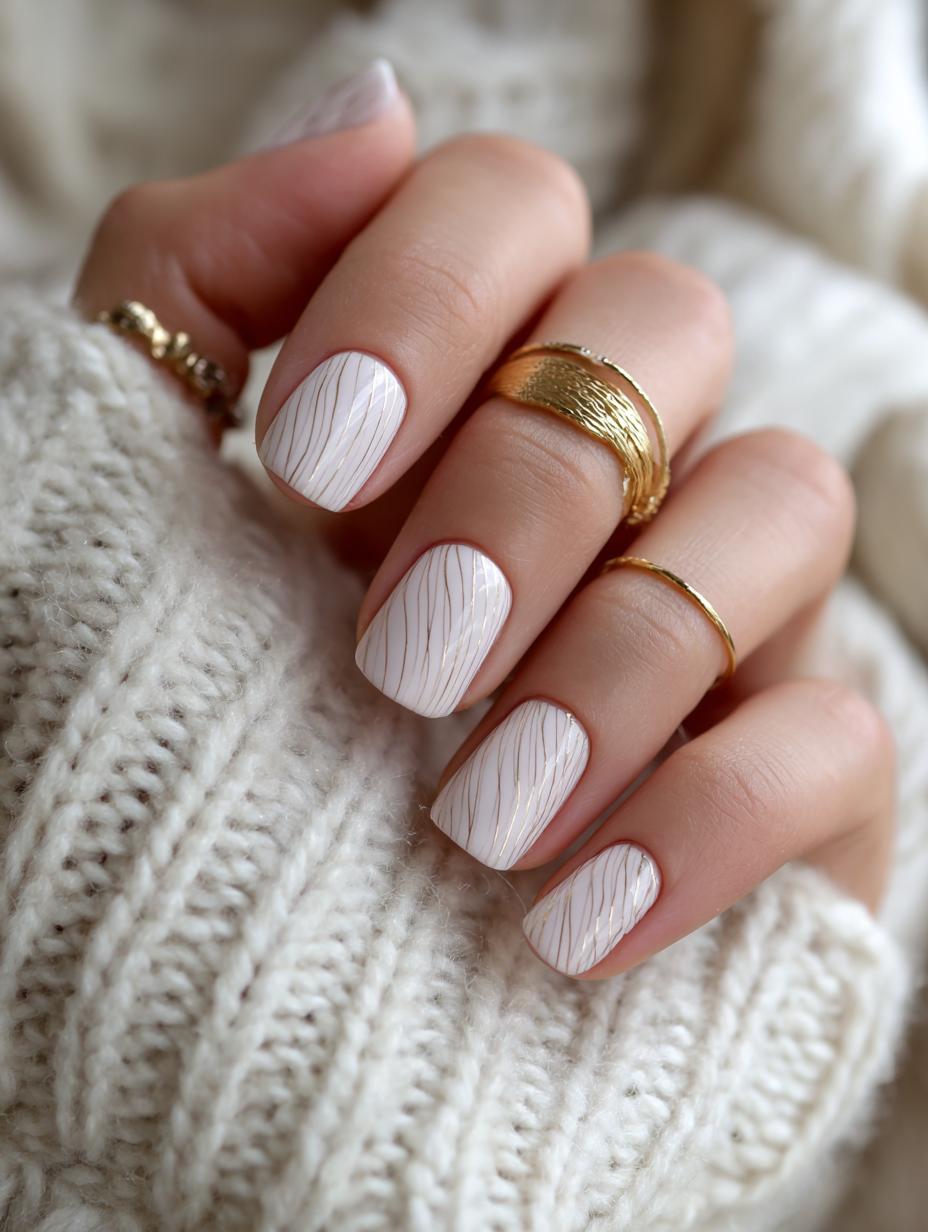 Minimalist Textured White Nails with Gold Accents