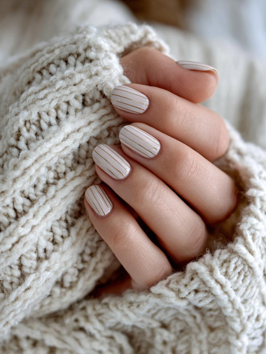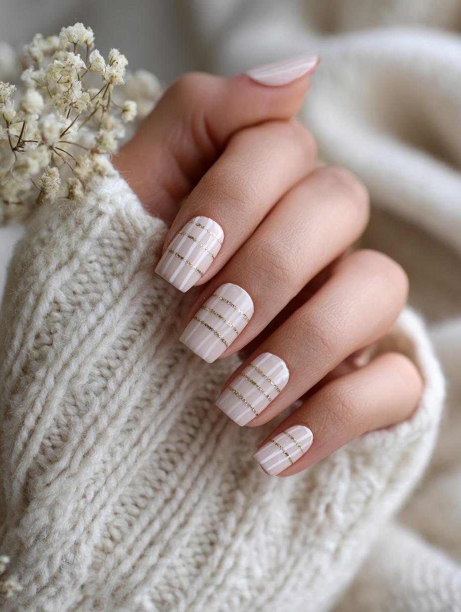 Elegant Striped Nail Art with Gold Accent Lines