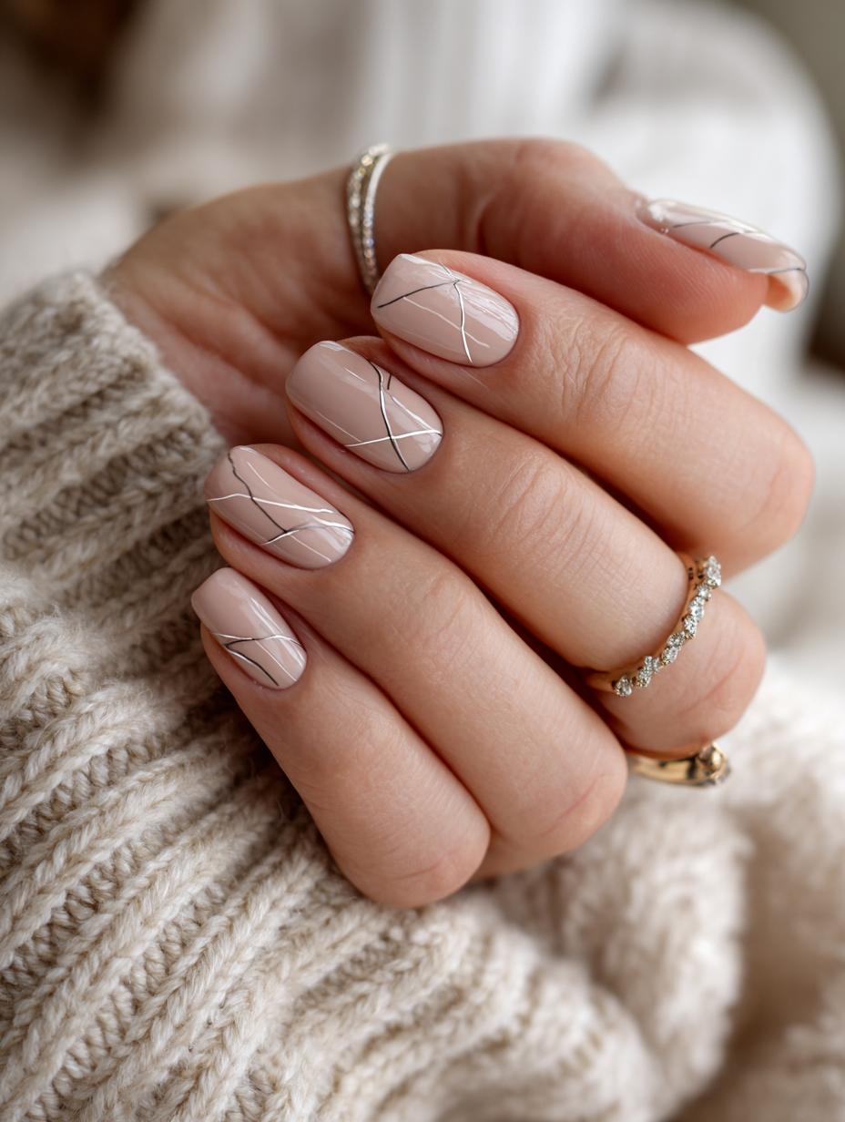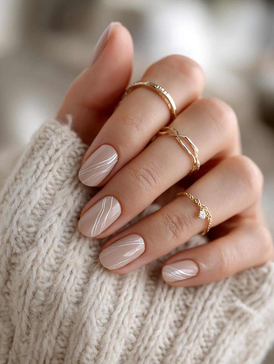 Minimalist Linear Nail Art in Nude Tones