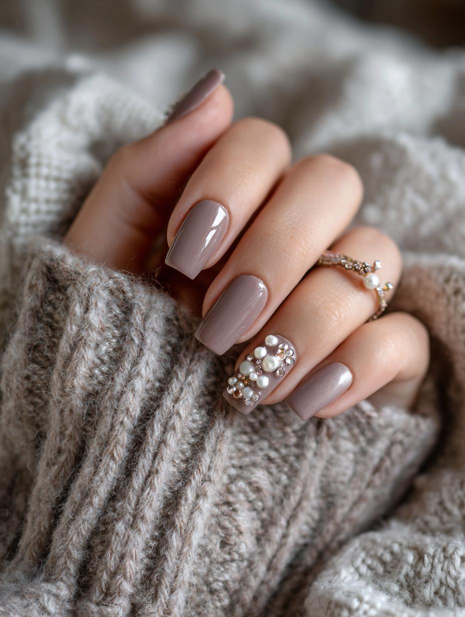 Pearl-Embellished Taupe Nails: The Ultimate Quiet Luxury Statement
