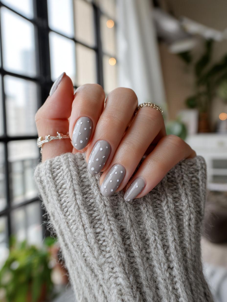 Sophisticated Polka Dot Nails in Muted Gray