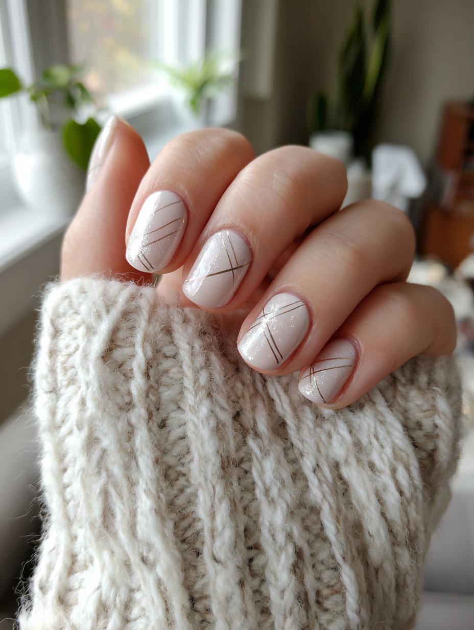 Minimalist Linear Nail Art in Neutral Tones