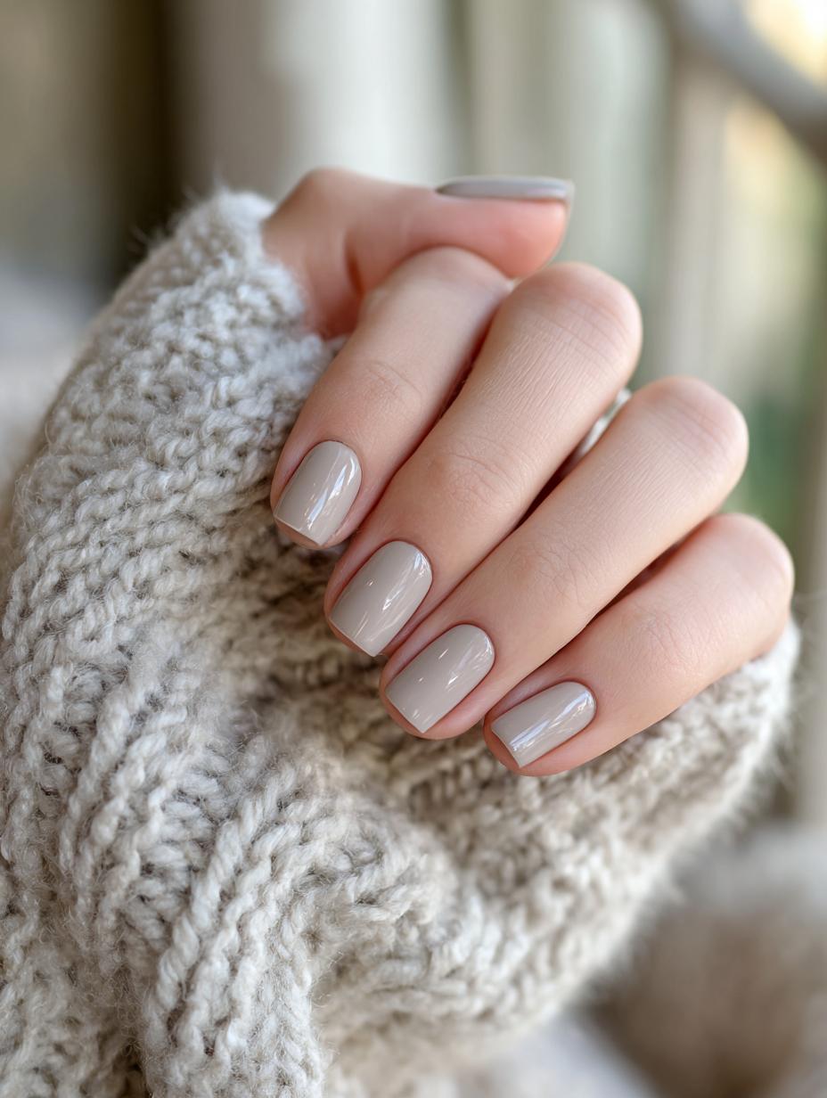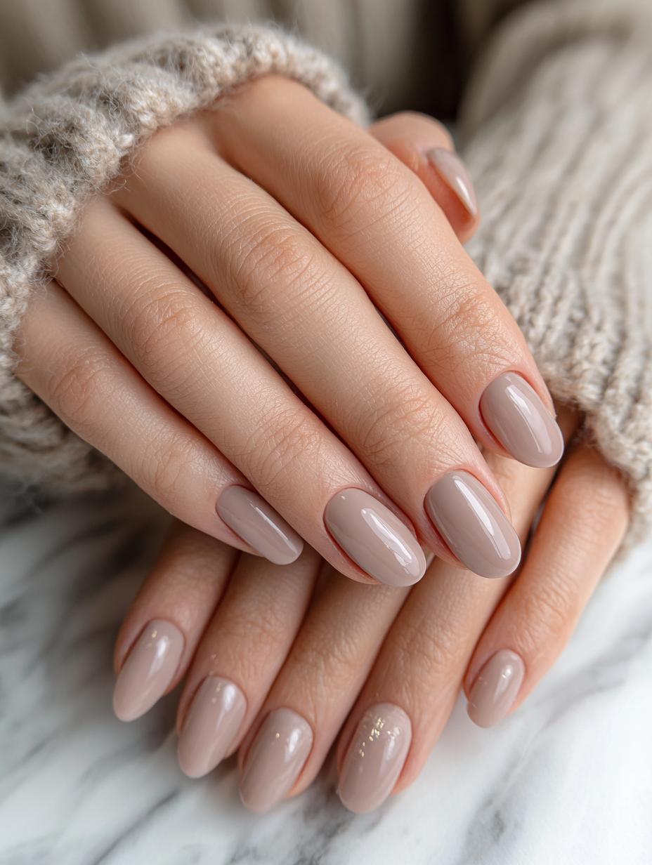 This stunning nude manicure exemplifies quiet luxury at its finest. The glossy oval-shaped nails in a sophisticated taupe-beige shade create an effortlessly chic look that’s perfect for any occasion. This timeless nail art proves that sometimes the most elegant statement is the most understated one. The neutral tone complements any skin tone while the high-shine finish adds just the right amount of polish without being flashy. It’s the kind of manicure that whispers sophistication rather than shouting for attention.