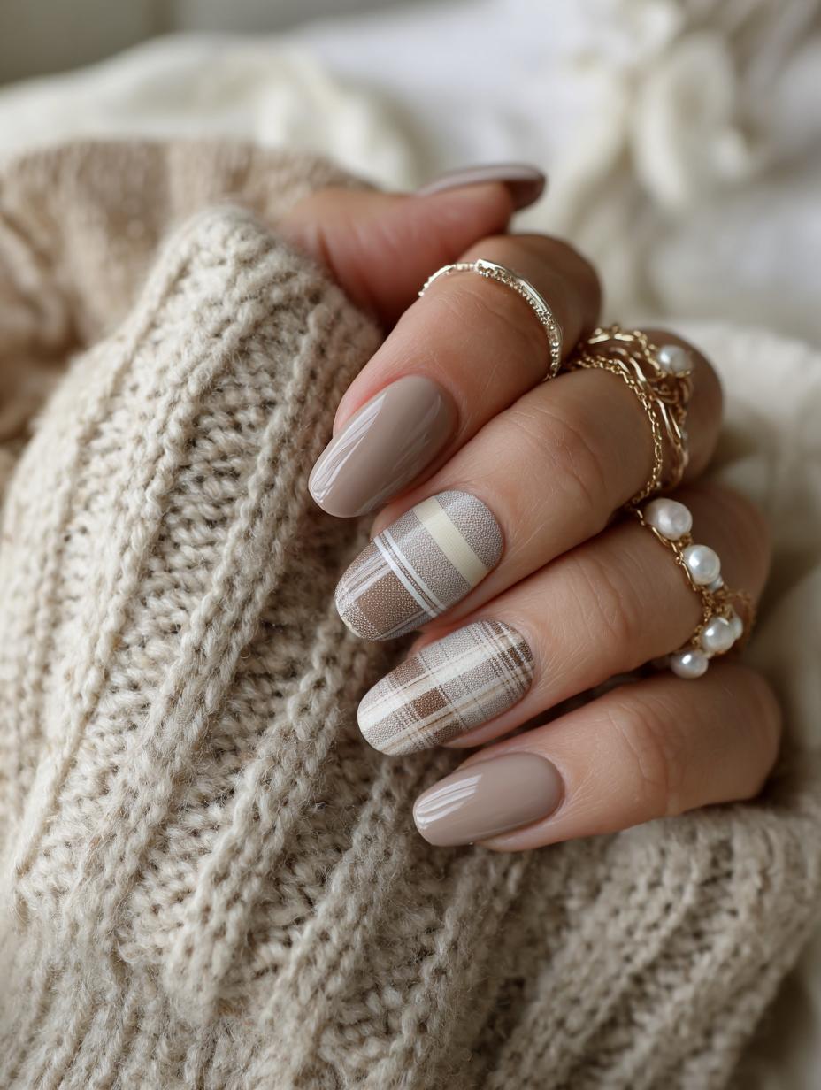 Neutral Plaid Perfection: The Ultimate Quiet Luxury Nail Art