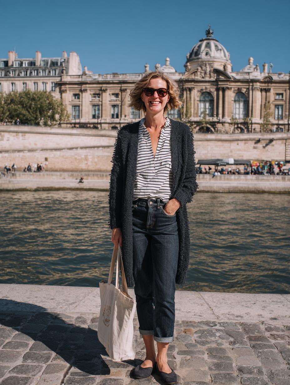 Effortless Seine-Side Style with Relaxed Denim and Knit Layers