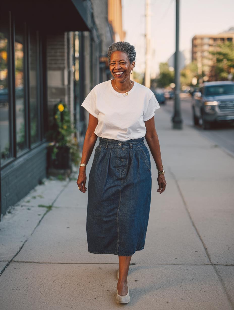 Effortless Chic: The Classic White Tee and Denim Midi Formula