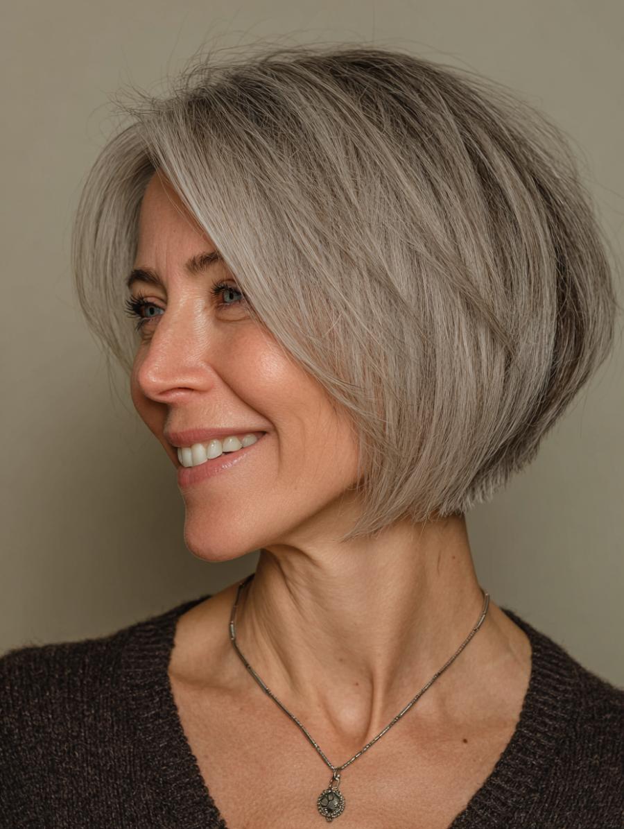 Effortlessly Chic: The Silver-Kissed Bob That Breaks Every “Mature” Hair Rule